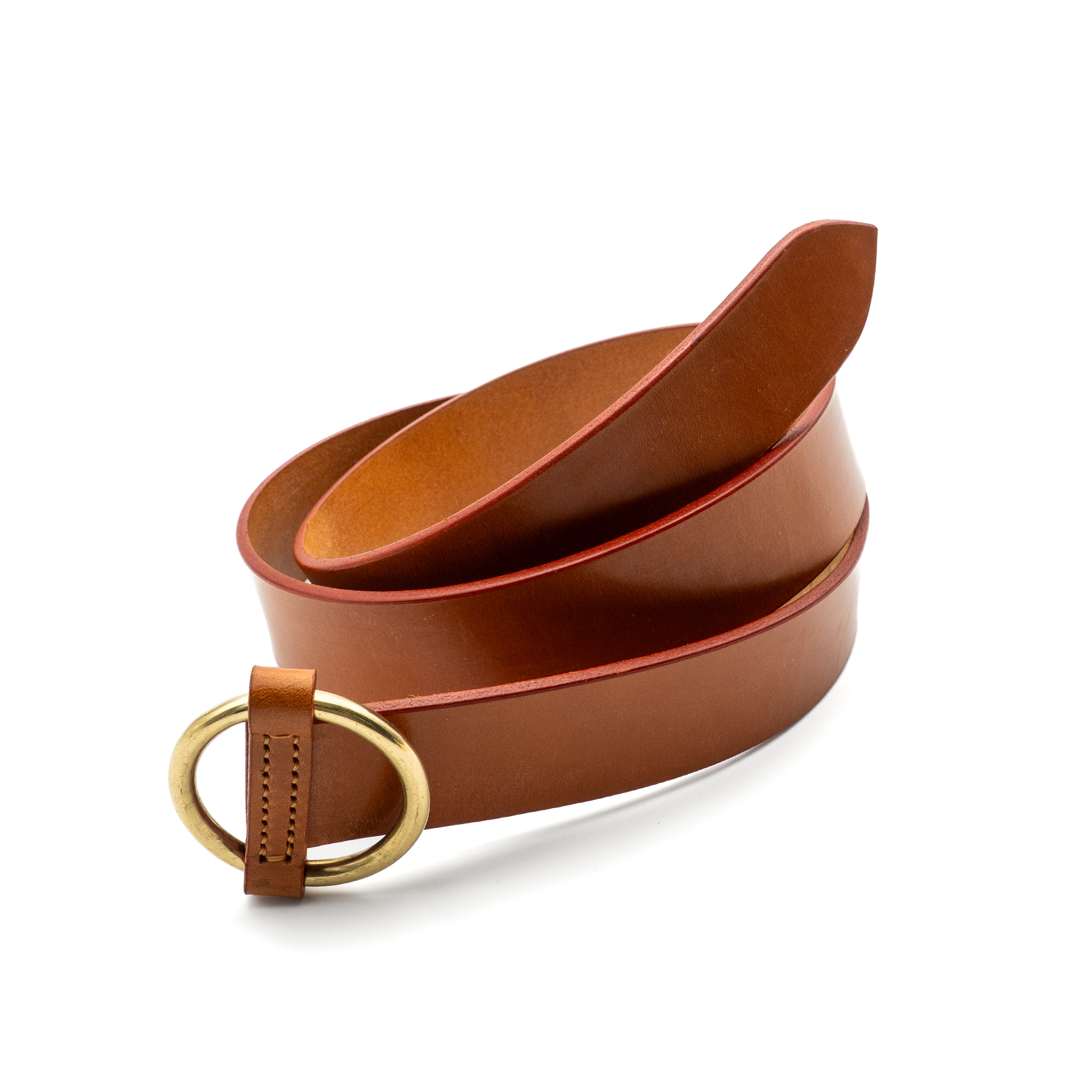 La fibbia ad anello, tipica della selleria tradizionale, conferisce un tocco distintivo e funzionale, richiamando gli accessori equestri per praticità e stile. Il cuoio, lavorato con tecniche artigianali, sviluppa una patina unica con l’uso, rendendo ogni cintura ancora più esclusiva.